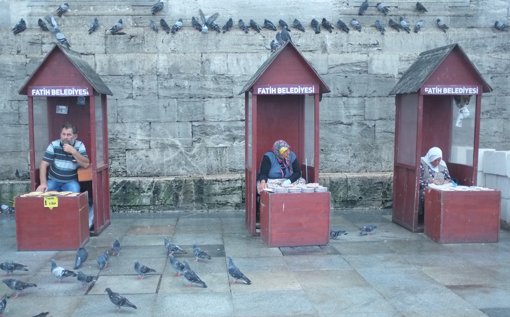 Selling food for the pigeons near the Spice Market and next to the New Mosque.