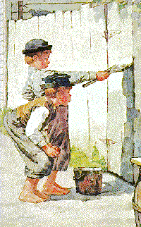 We had a wonderful time in Hannibal. It would be easy to poke fun at the tacky souvenir shops, but the truth is we had a great time. One reason it works is that Mark Twain's characters are loveable, and they are everywhere. Maggie, Tote, and Duncan know Tom, Huck, Becky, and Injun Joe. The kids know parts of Huckleberry Finn and Tom Sawyer from a Garrison Keillor tape and a Wishbone TV show. (The Wishbone show changed "Injun" Joe's name). Also over the last few days, we read the whitewash and pirate episodes as we drove along. Since about a year ago, Maggie and I read Tom Sawyer from cover to cover, Maggie loves to lord her complete knowledge of the book over the boys.