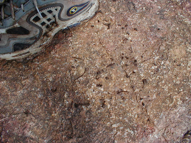 Shoe, only partly de-leeched, and leeches (all those brown things on the rock) |
