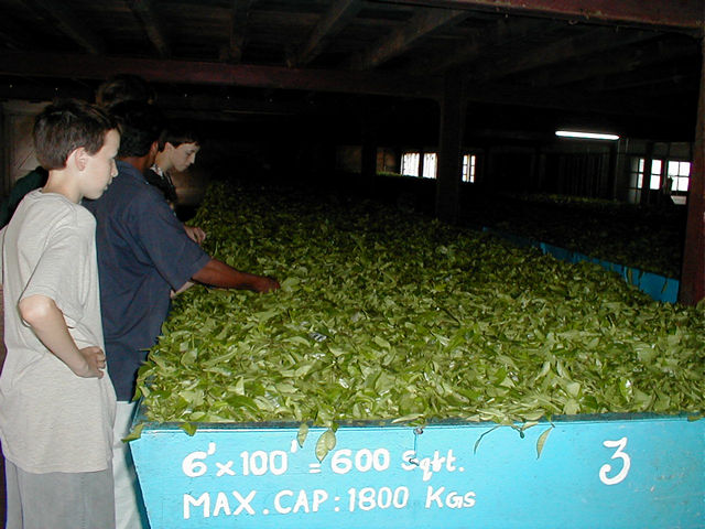 Bins to store the morning's harvest and to "wither" it. |