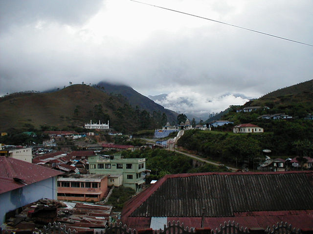 The town of Munnar - that's a hindu temple in the middle of the picture. Munnar is rather a blot on the beautiful landscape. |