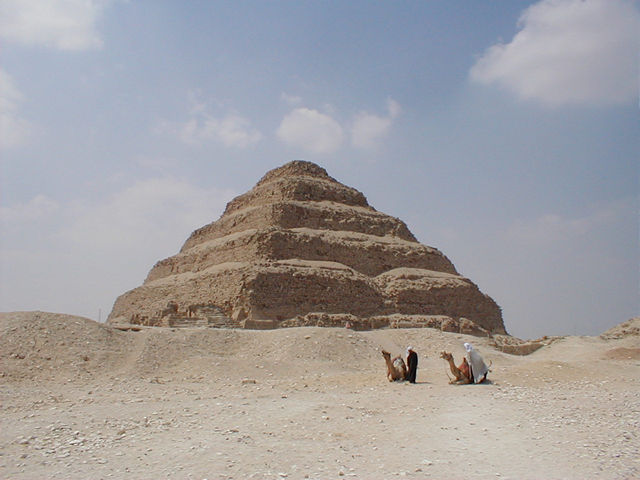 Step pyramid of Doser. Constructed by Imhotep in 27 BC, this was the largest stone structure ever built. Until Imhotep royal tombs were underground rooms with an occasional mud-brick mastaba on the top. |