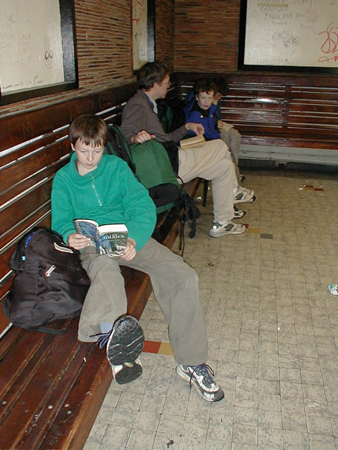 Reading in the horrible waiting room in the Cerebere, France train station |