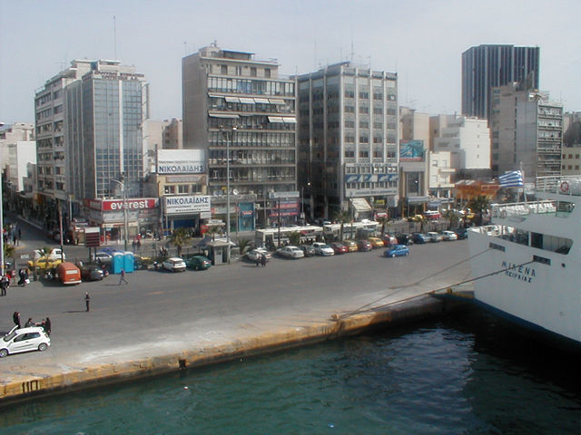 The modern Piraeus, the port of Athens. It's about 6 miles from Athens and, during the Classical period, was connected to the city by long walls. |