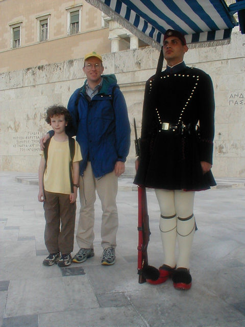 Two goofs and a goofily dressed guard