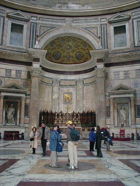 Inside of the Pantheon, converted in 608 to the Church of All Martyrs. The renaming of the Pantheon helped it survive most of the predations of the Christians. |