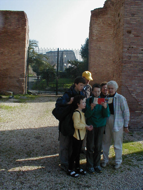 Standing in the Basilica Maxentius and checking things out in Grandma's Then and Now book |