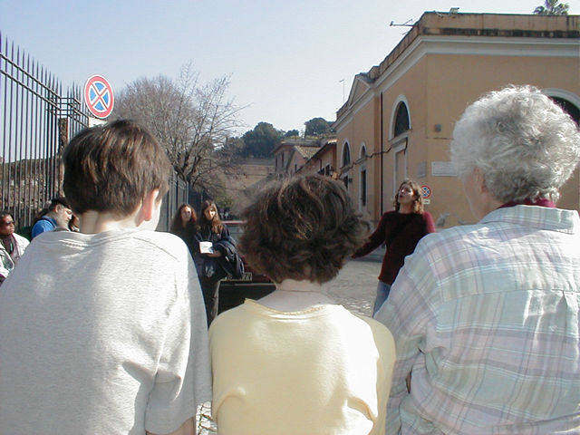 One popular way of making money is to give free tours and then ask for tips. This guy was really good. He is declaiming Antony's speech from Julius Caesar in this picture. |
