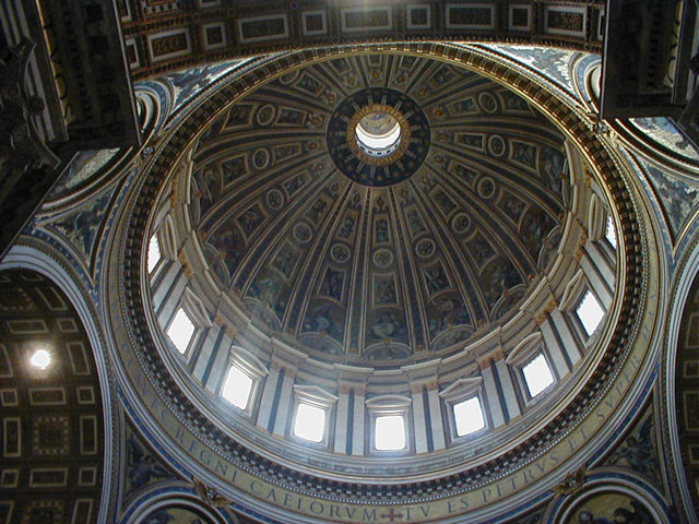 The great dome. The top is 390 feet from the floor. The entire seven story canopy would fit into the lantern (the light spot at the very tip) |
