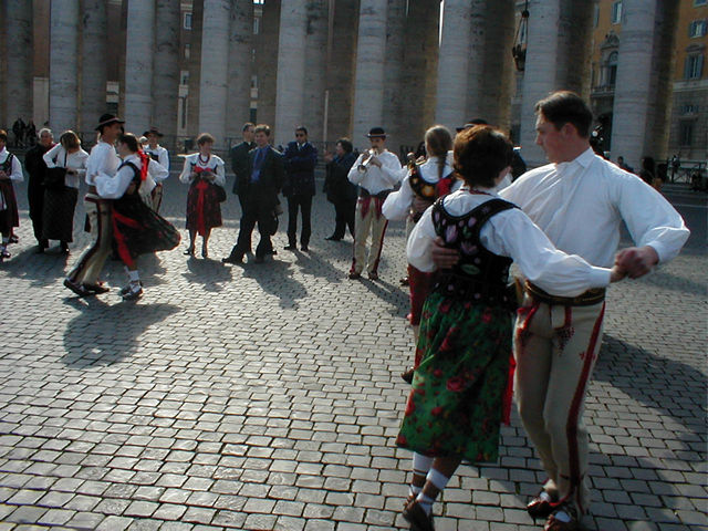 Polish folkdancers performing in the Square after playing tune and singing at the papal audience |