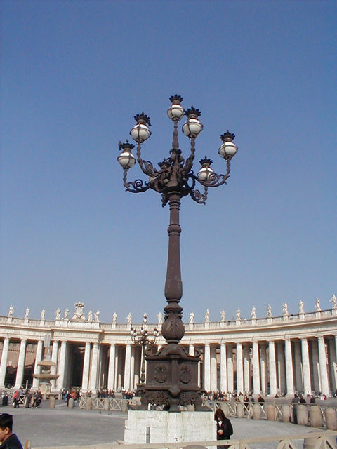 The Square is really an ellipse. It was designed by Bernini. At the center of each side of the collonade, the columns "line up, " i.e. the three outside sets disappears behind the front set. |