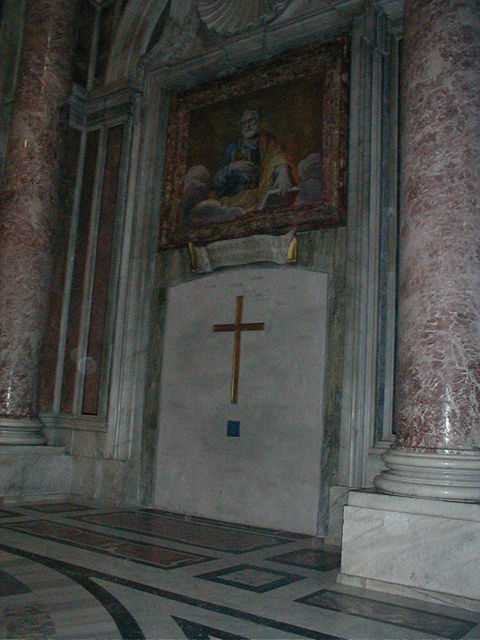 The inside of the holy door. It is opened only every 25 years -- those are holy years. On Christmas of the preceding year, the Pope whacks the door with a silver hammer. It is then opened and stays open until early January. It was open in 2000 and just cemented over a few days ago. |