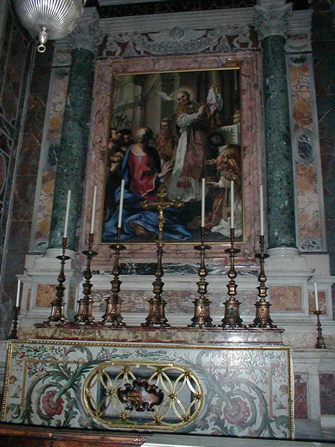 Pope Gregory's grave and chapel. It looks like a painting above the altar, but it's not. All but one of the paintings in St. Peter's were replaced by incredibly detailed mosaics. This is one of the mosaics. |