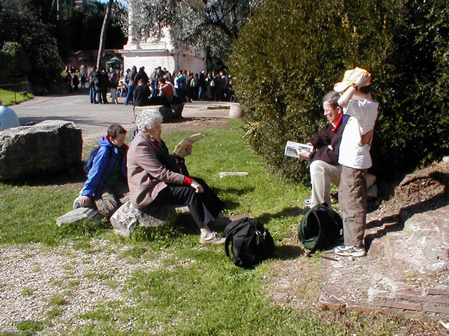 Getting oriented in front of the Arch of Titus. The Arch was built to commemorate the sacking of Jerusalem in 71 AD. |