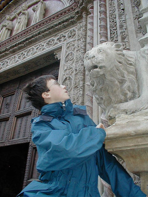 Duncan and lion outside St. Lorenzo |