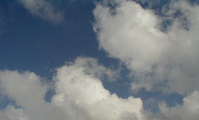 Tote couldn't resist taking a picture of the clouds, or maybe he was just fascinated by the unsual color of the sky. It actually appeared to be blue. |