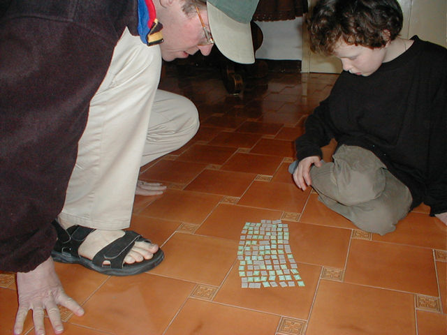Maggie and Mark making rectangles to try to figure out why jigsaw puzzles have 108 pieces instead of just 100. Good thing we have time for math. |