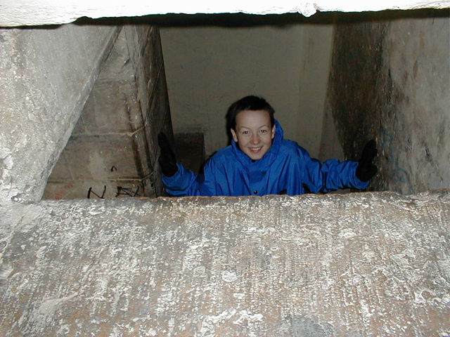 Duncan: Tote's looking through a little window that was at the very bottom of the wall. Maggie took a picture of him there. |