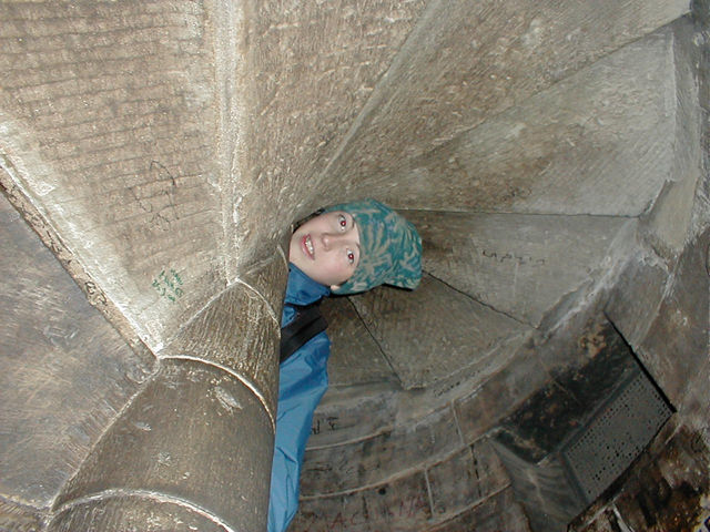 Maggie: Duncan's head in a spiral staircase. I was below him, I think. |