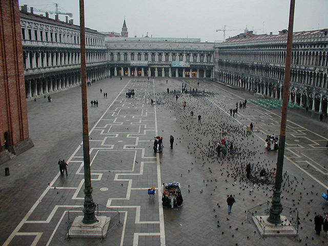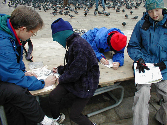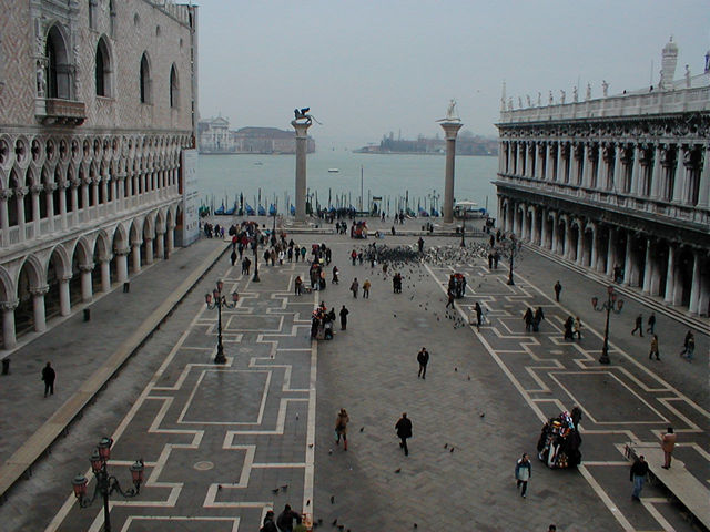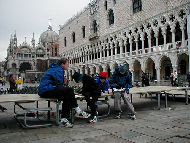 Drawing at the piazzetta, eating eel, the top and bottom of St. Mark's, and eating fish and ray