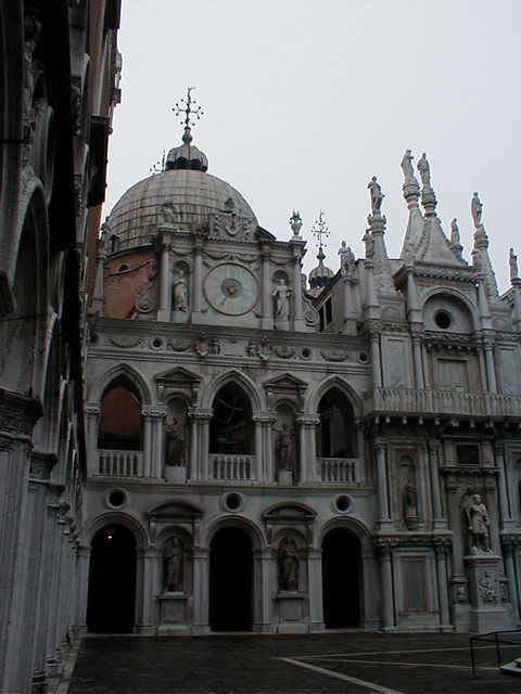 The Doge's courtyard. On the last Sunday of Carnival, a bull hunt was held here to amuse the doge's maidservants. |