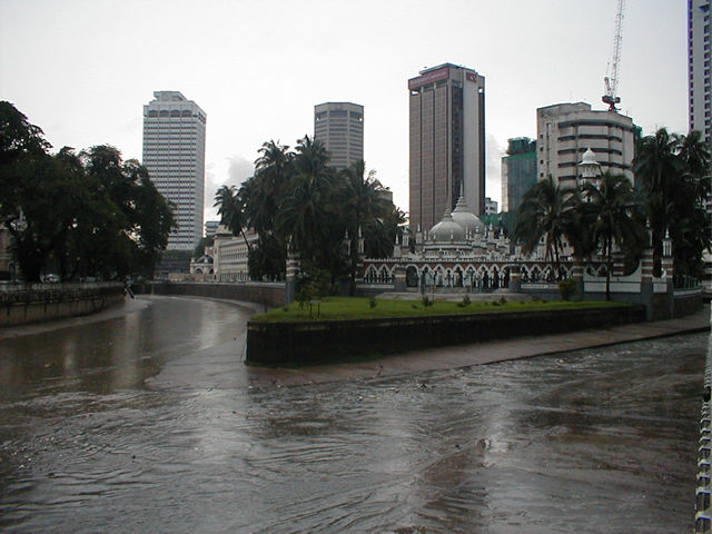The Masjid Jamek and the spot where KL's founders first set foot in town. (The name Kuala Lumpur means Muddy Confluence. With reason. We passed the confluence after a big rain, and the river was a muddy, liquid trash pile.) The founders were 87 Chinese tin miners who eventually moved to a location some miles from here. Strategically commanding both river valleys, the community flourished as a tin-collecting centre despite its malarial jungle location. |