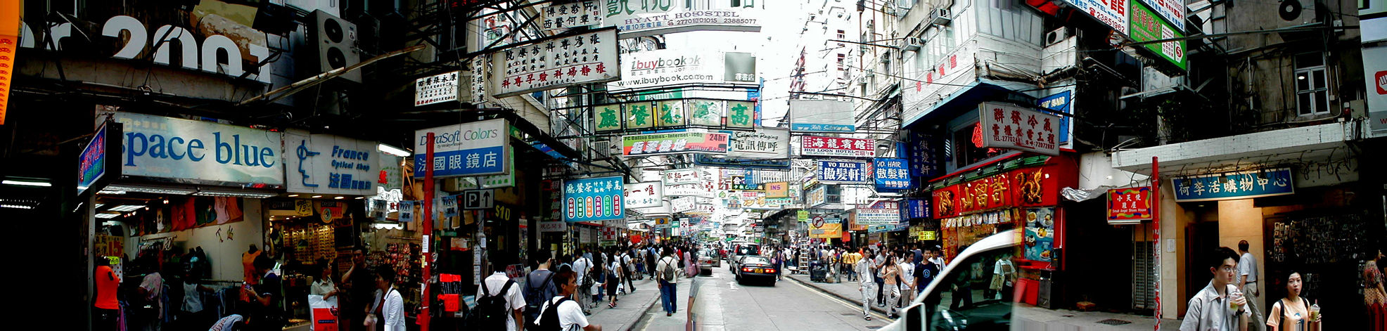 Hong Kong shopping area. Clothes, electronics, bootleg software, cell phones, floor after floor, shop after shop. |