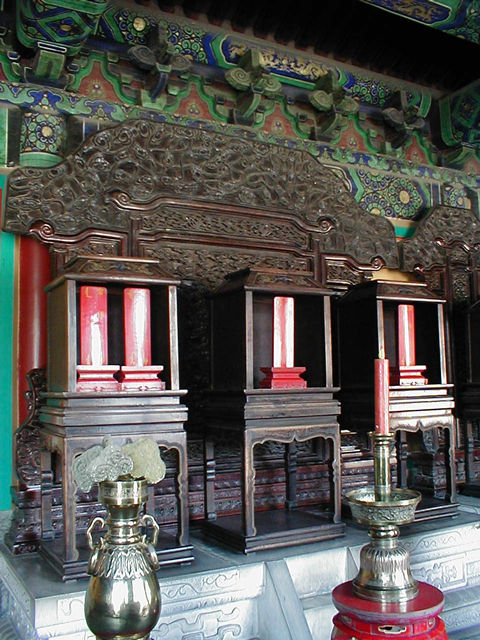 Whatever the emperors were doing here, they often did it with "tablets," like the red ones shown here. These tablets were dedicated to heaven or celestial bodies or both, depending on which interpretative sign one reads. |