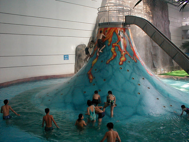 The kids scaling an ersatz volcanoe