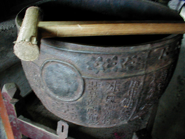 A "bell" which is often sounded each time a devotee touches his or her head to the ground before a statue |