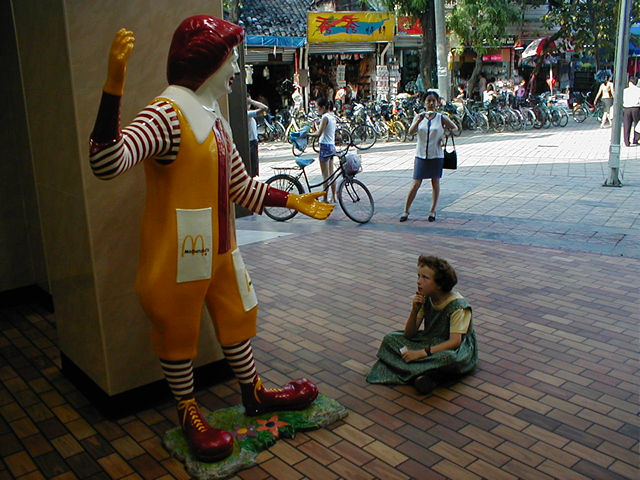 Maggie debating Ronald MonkDonald and a woman watching. We usually draw stares and occasionally draw small crowds |