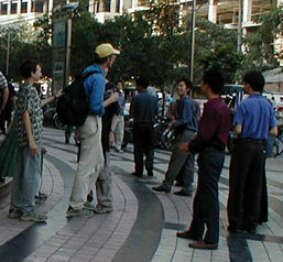 Mark with airplane ticket touts.