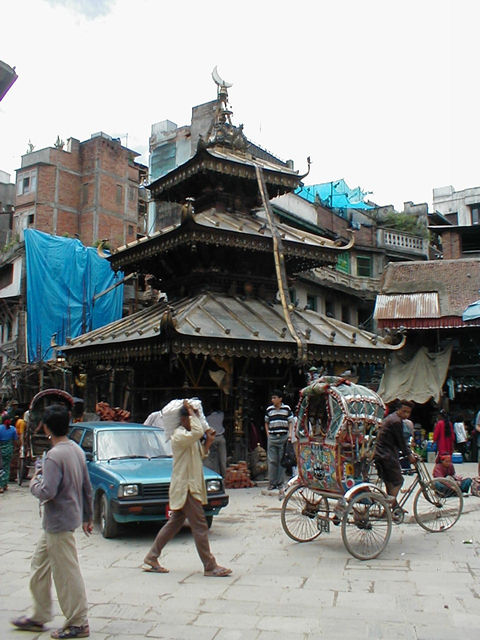 Annapurna Temple in Asan Tole. Six roads meet here, and it is busy with vendors and traffic. |