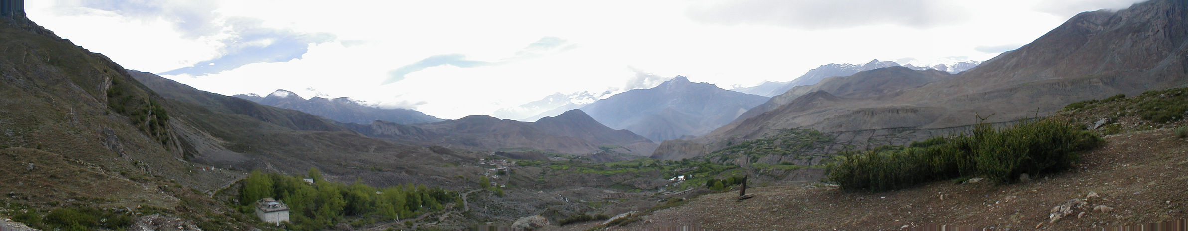 This is the view from above the Muktinath temple - that's the green spot on the left. If you look carefully, you might be able to see mountains in the distance. This is, though you cannot tell it from the photo, one of the most spectacular views anywhere. |