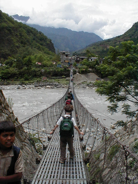 Our first suspension bridge, across the Kali Gandaki at Beni |