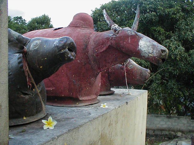 The statues with Maggie's flower