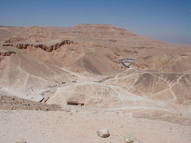 The Valley of the Kings. You can see the parking lot on the right. You can also see why many tourists find this place difficult - it's hot, sunny, and dry. |