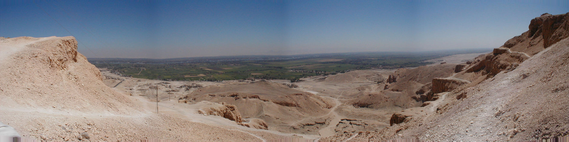 Looking from a ridge above the Valley of the Kings across the Nile Valley. How much has come from and still comes from that narrow green strip. |