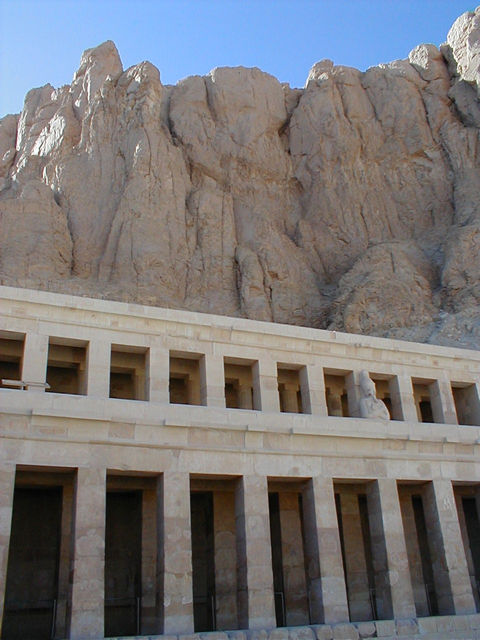 The temple was once surrounded by myrrh trees, garden beds, and approached by a grand sphinx-lined causeway. |