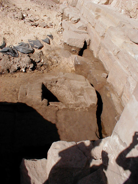 The water table is very high. This small hole shows that the water is just below ground level. This makes it very difficult to keep Karnak ruins "in repair" |