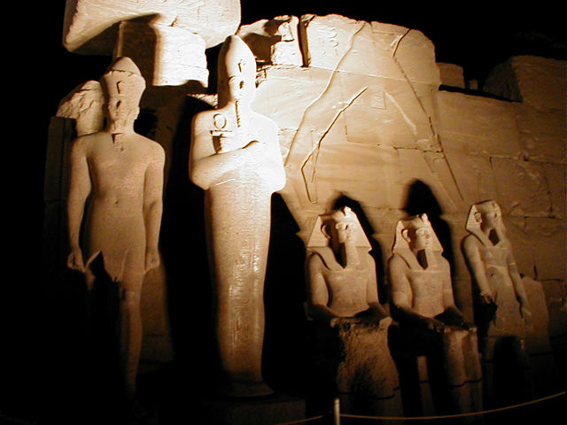 Some of the statues from the "cachette." Archeologists discovered a cache of temple offerings that had apparently been picked up and stashed when someone did a "spring cleaning." Hundreds and hundreds of stone and bronze figures were in the cache, including these. |