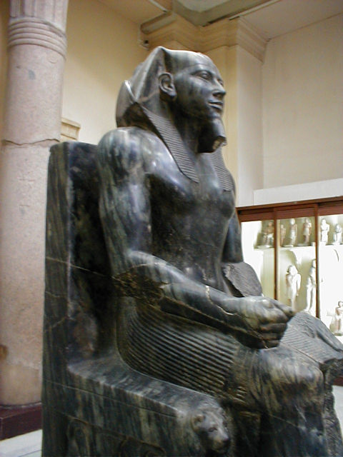 This is Khafra, builder of the second pyramid at Giza. From about 2500 BC. |
