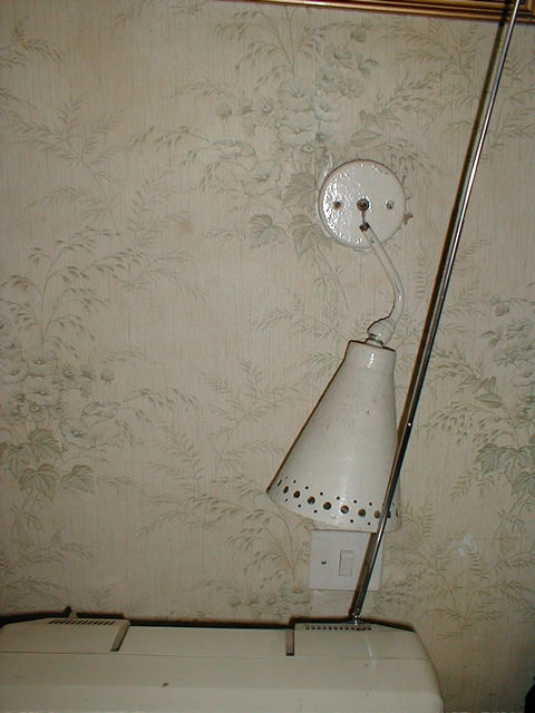 Lamp dangling from wire above TV that didn't seem to receive any stations. " vspace="5" hspace="5" align="left |