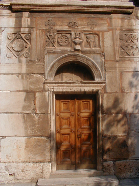 Part of Monica's door collection. This one is from the 12th-century Mitrópolis, Áyios Elefthérios, one of three genuine Byzantine churches that still survive. |