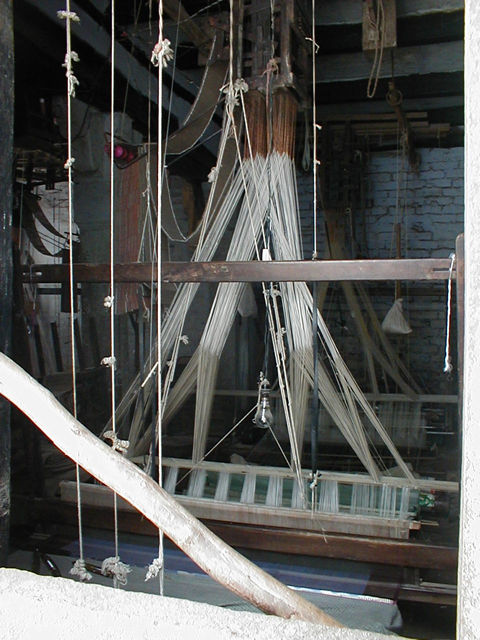 Benares is still famous as a center for beautiful handwoven cloth. This is a loom we passed |
