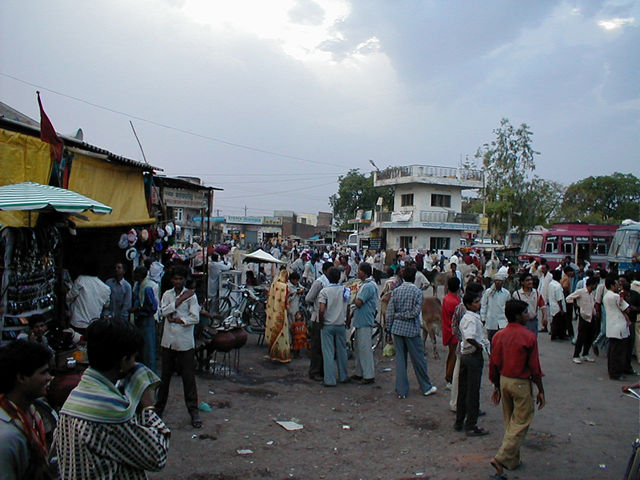 A bus "station" on the way to Khajuraho. The buses in this part of the country don't seem to be as well organized as in the south. The bustle is the same. |