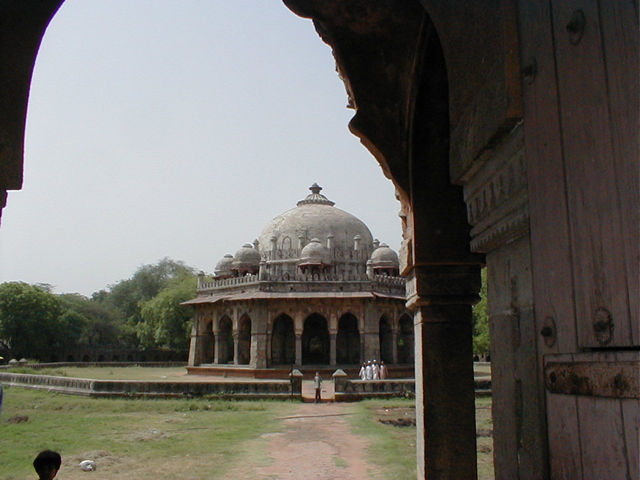 This is a tomb in the Humayun tomb compound. Humayun's tomb is the first example of Mughal architecture. (The Mughal emperors, muslims, dominated India from the mid-16th to the late 17th century.) |