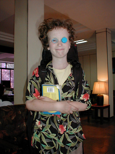 Goofball wearing waterbottle glasses