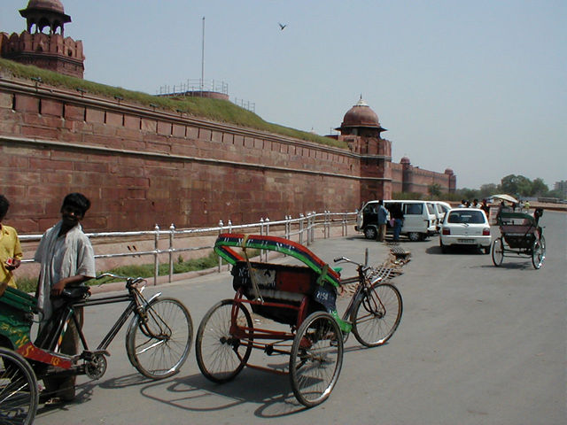 This helps give some idea of the size of the Red Fort. This shows about half of one side. |