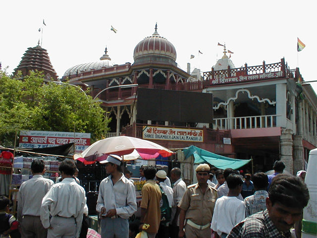 The Jain Temple across from the Red Fort. Jainism was founded in the 6th Century BC by Mahavira, a contemporary of Buddha. Curiously, Mahavira and Buddha both came from the same region in India. Jainism is virtually non-existent outside India; Buddhism is not widely practiced in India. |